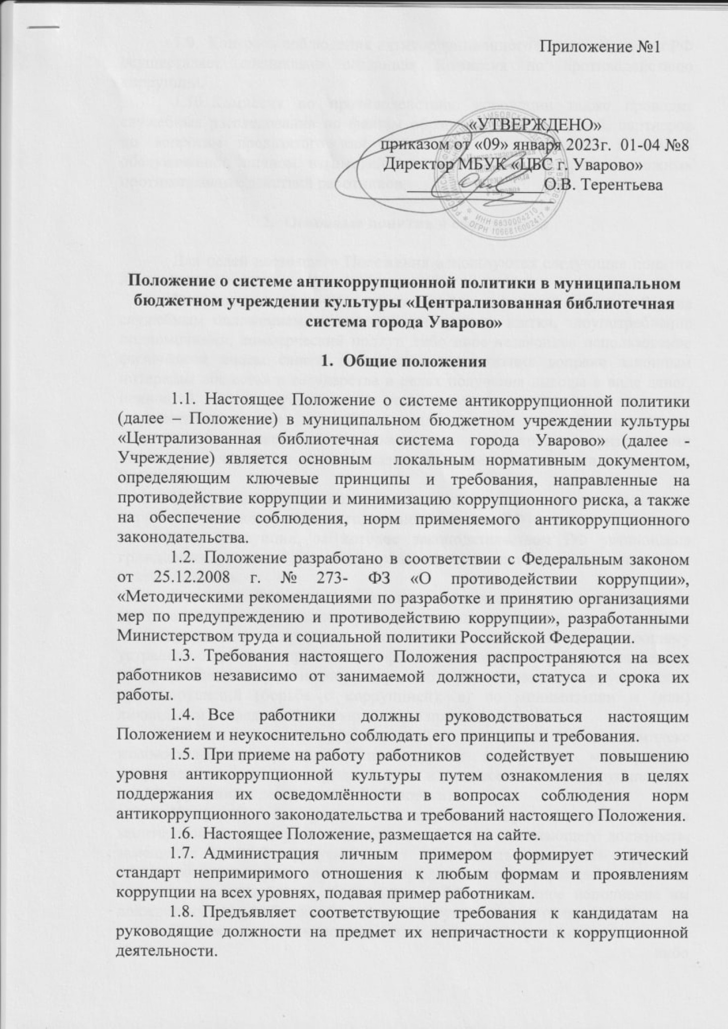 Положение о системе антикоррупционной политики в МБУК