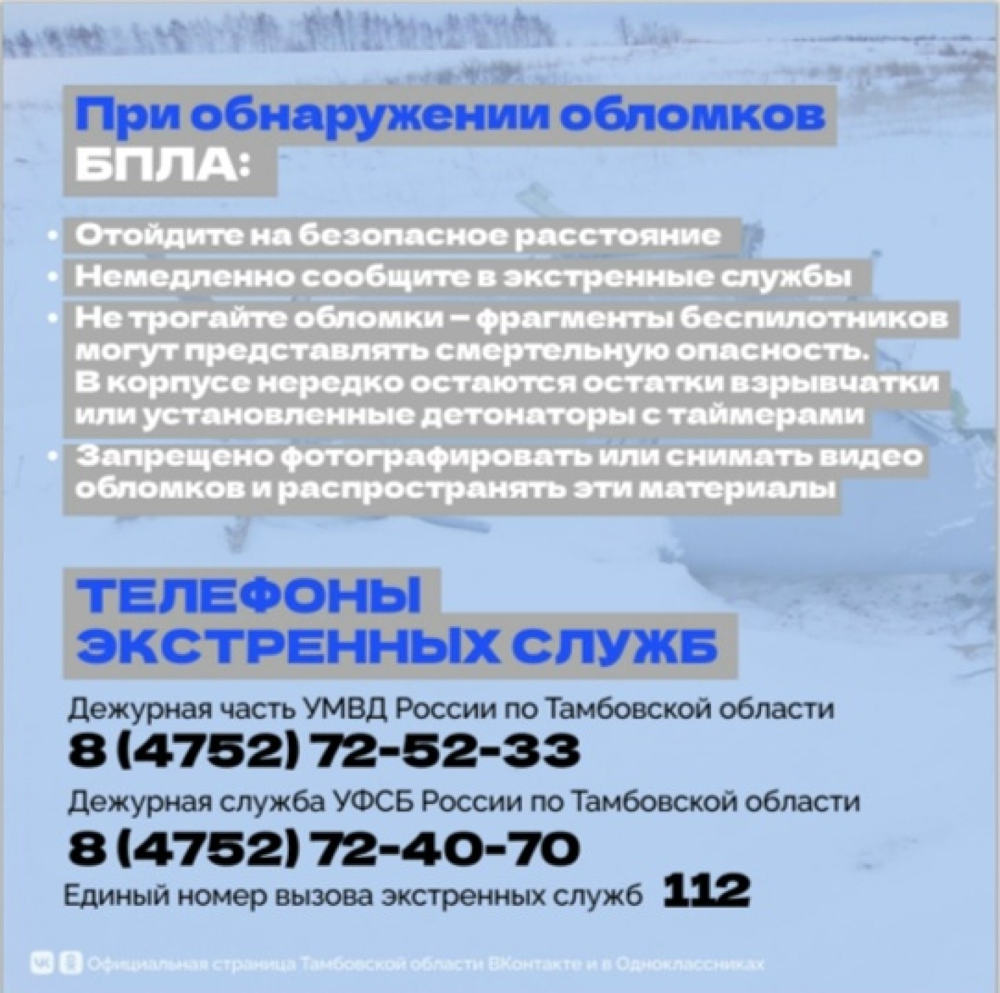 О правилах поведения при обнаружении обломков БПЛА